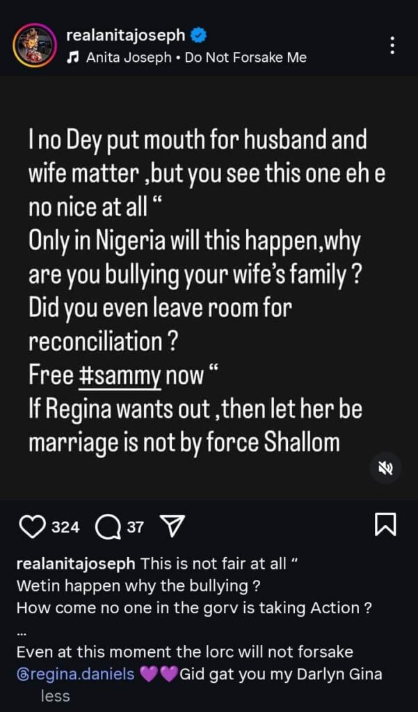 Nollywood actress Anita Joseph has slammed Nigerian politician Ned Nwoko for intimidating his wife, Regina Daniels’ family.